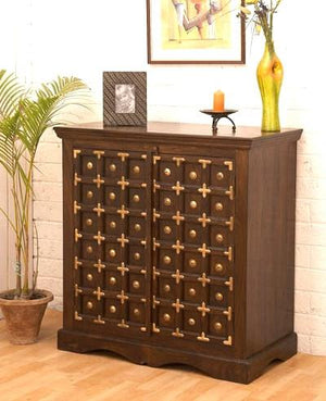 A bold and spacious wooden bookshelf with door and storage, ideal for larger book collections. Its solid wood build makes it a durable choice for Indian homes that need both style and capacity.