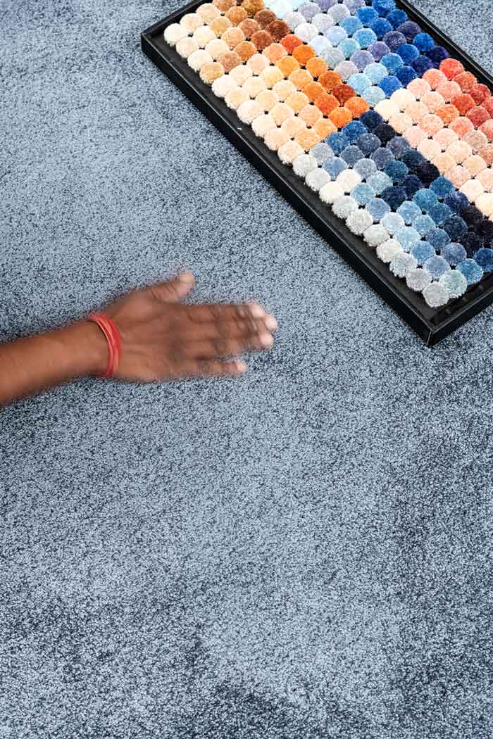 A team of skilled artisan’s fuse modern & traditional processes to create this hand woven rug. The chosen design is scaled and enlarged to create a “graph” of the rug which is then printed onto canvas and stretched across a frame. Loops of Naturally dyed WOOL & BAMBOO SILK are repeatedly punched through the canvas with a “tufting” gun to create the design. A latex coated referred as the “scrim” is applied to the reverse, enabling the “tufts” to be held in place, then a final protective natural cotton backing is applied. The top of the rug is sheared to create an even pile which is then hand carved to accentuate elements of design for a superior finish.