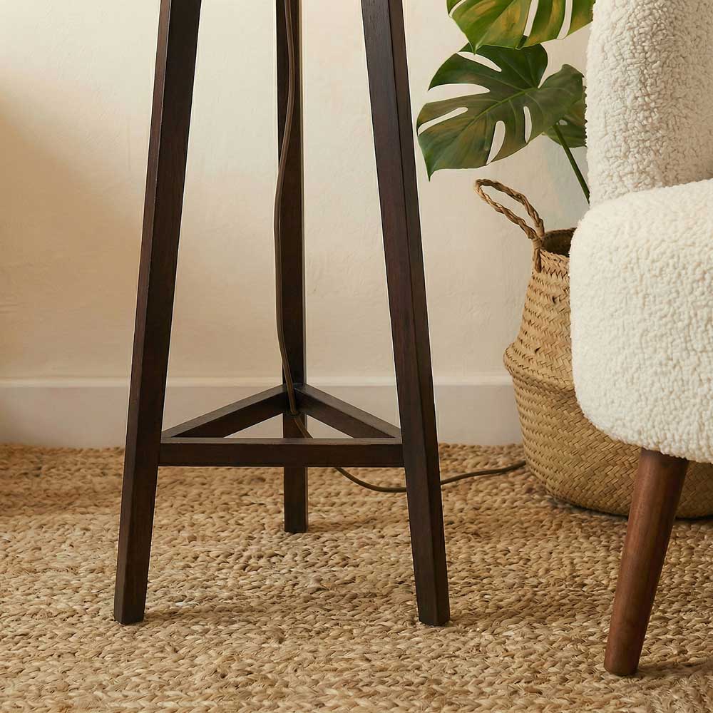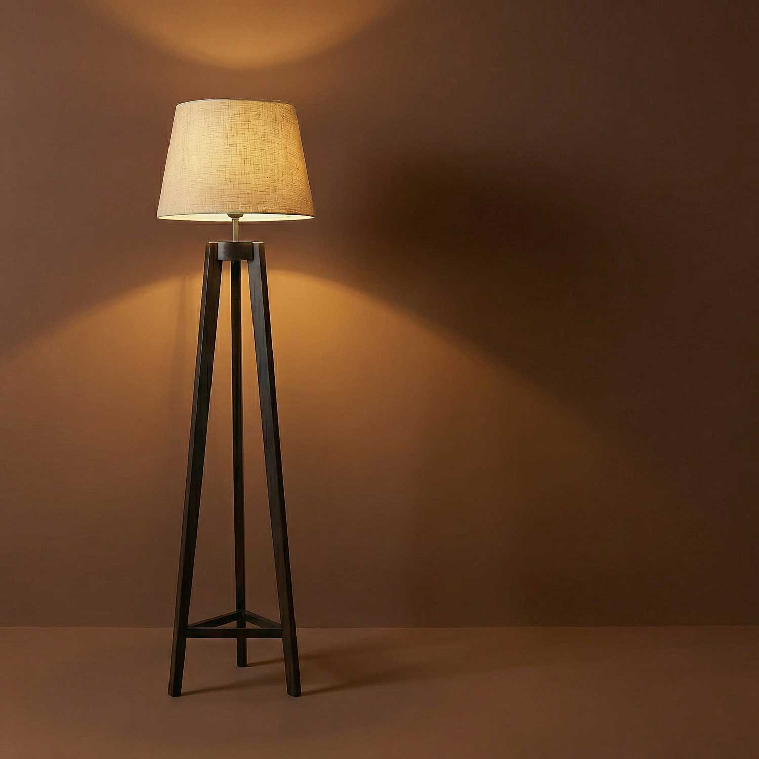 Adrienne Wooden Floor Lamp with Brown Base and Premium Beige Fabric Lampshade