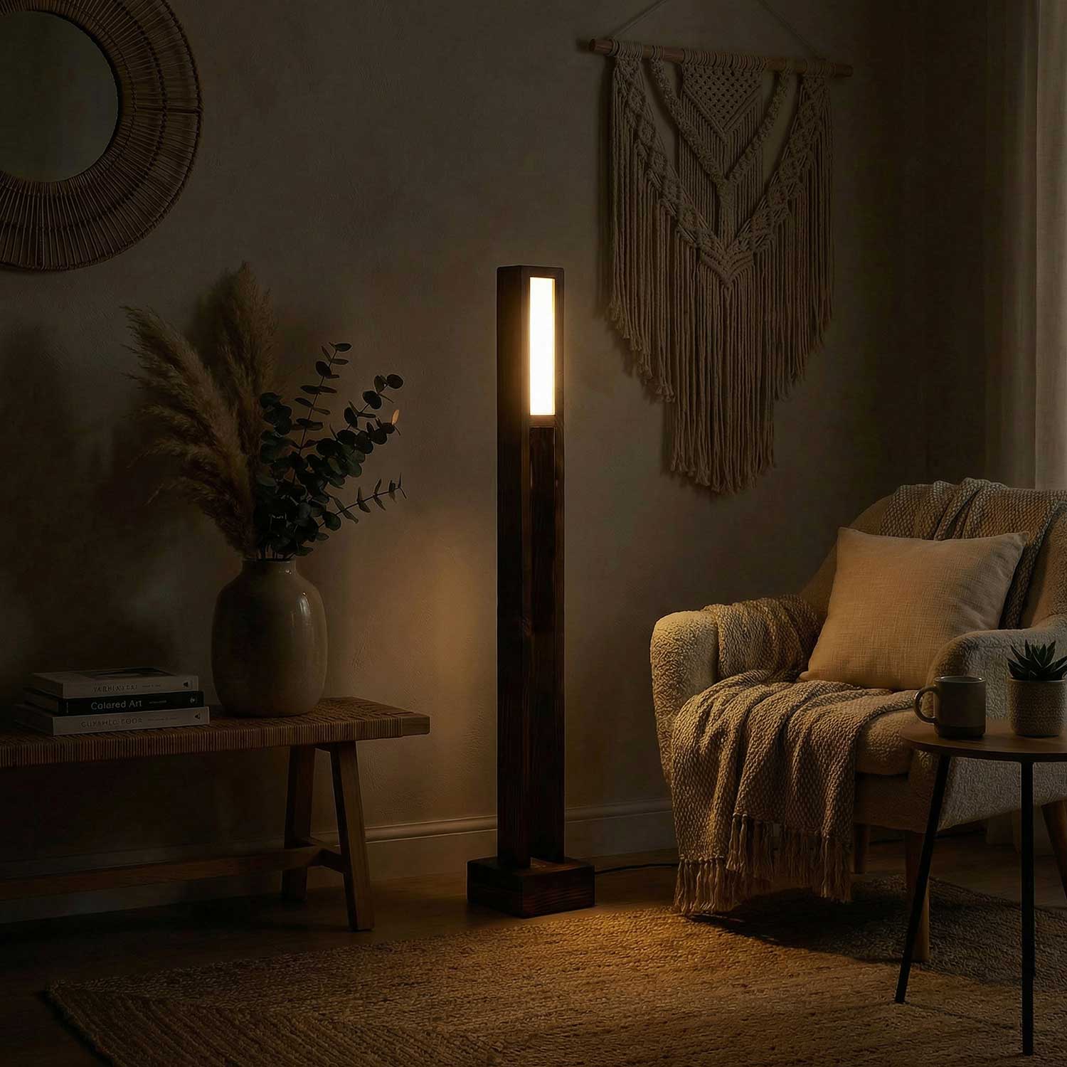 Elevar Wooden LED Floor Lamp with Brown Base