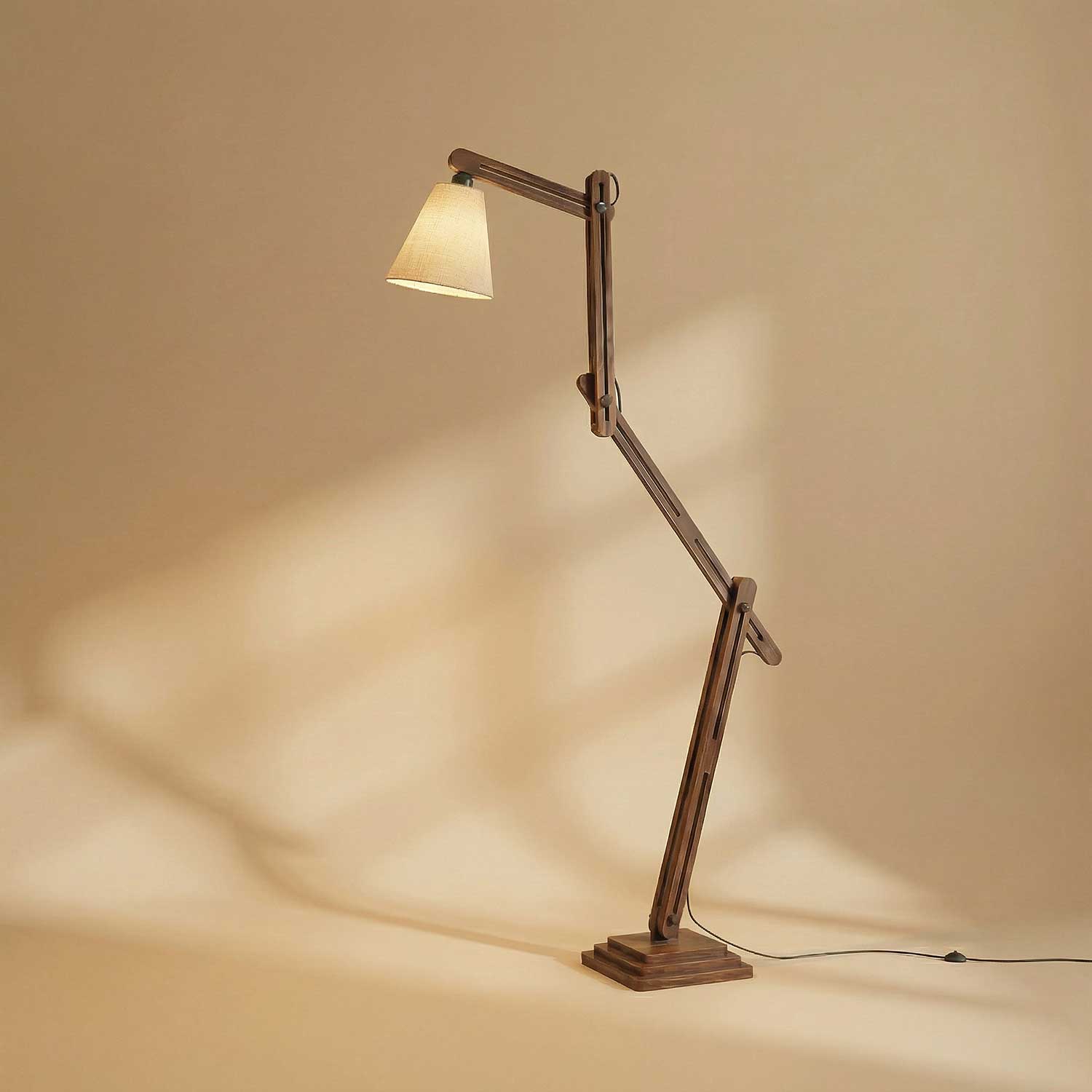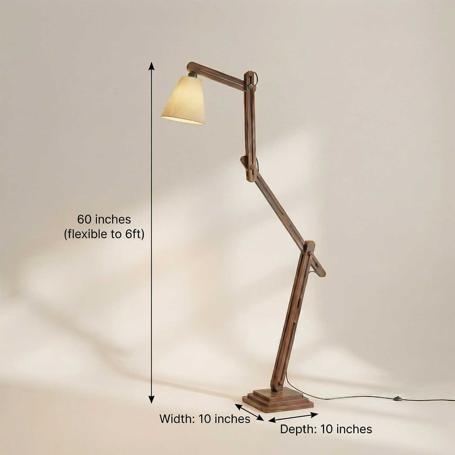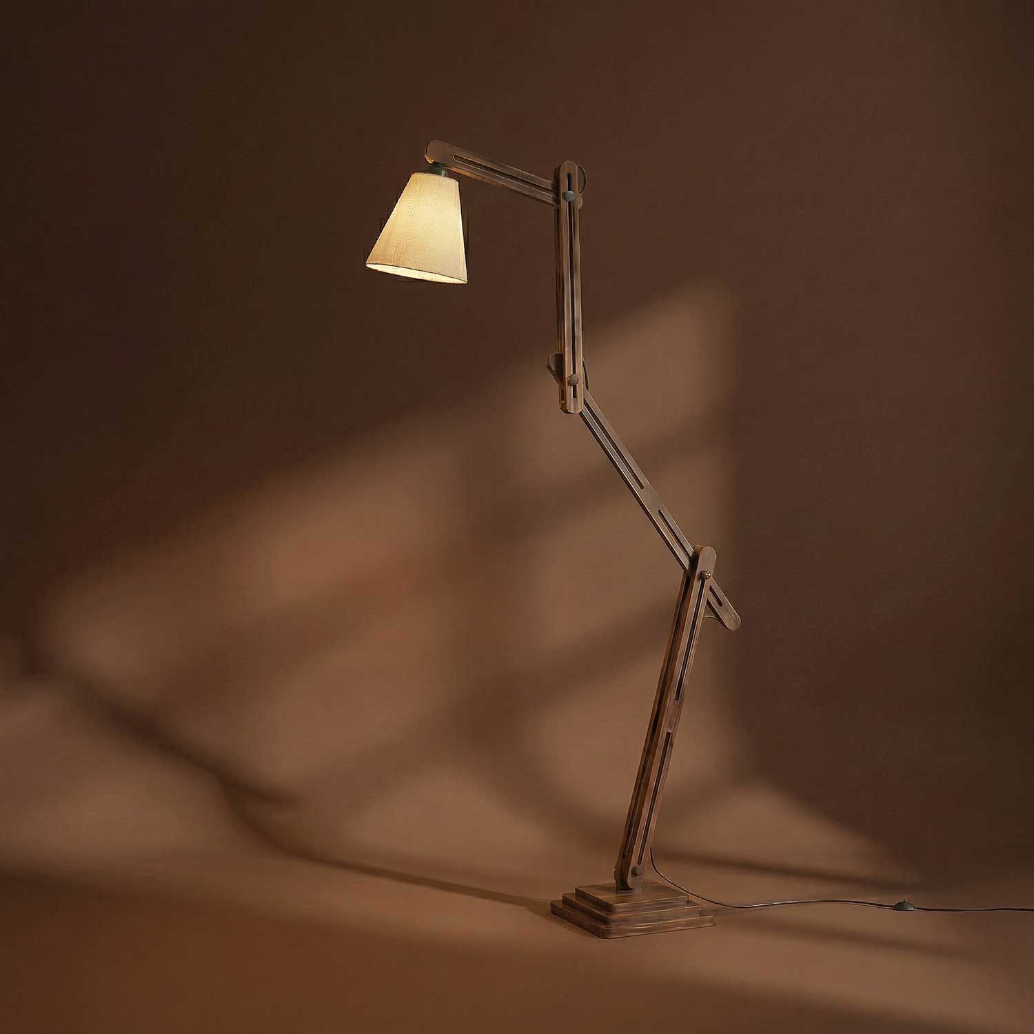 Hydra Wooden Floor Lamp with Brown Base and Jute Fabric Lampshade