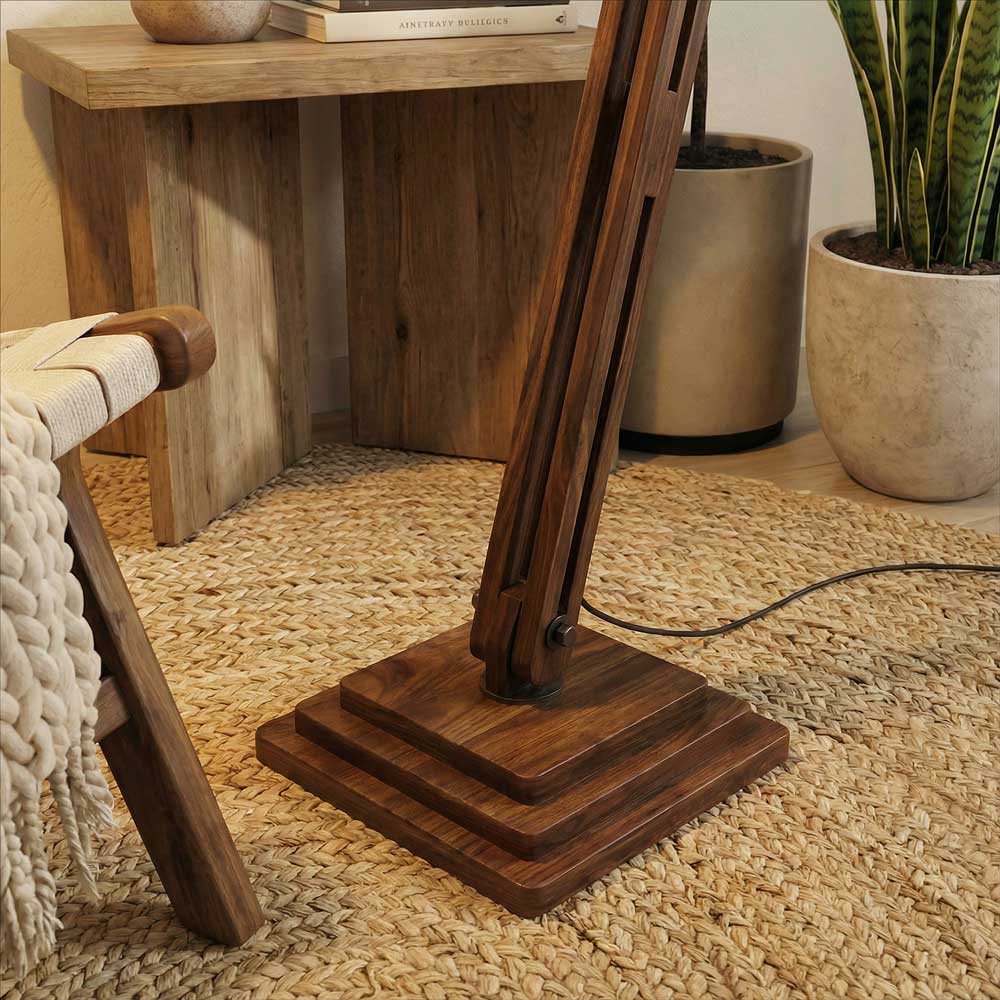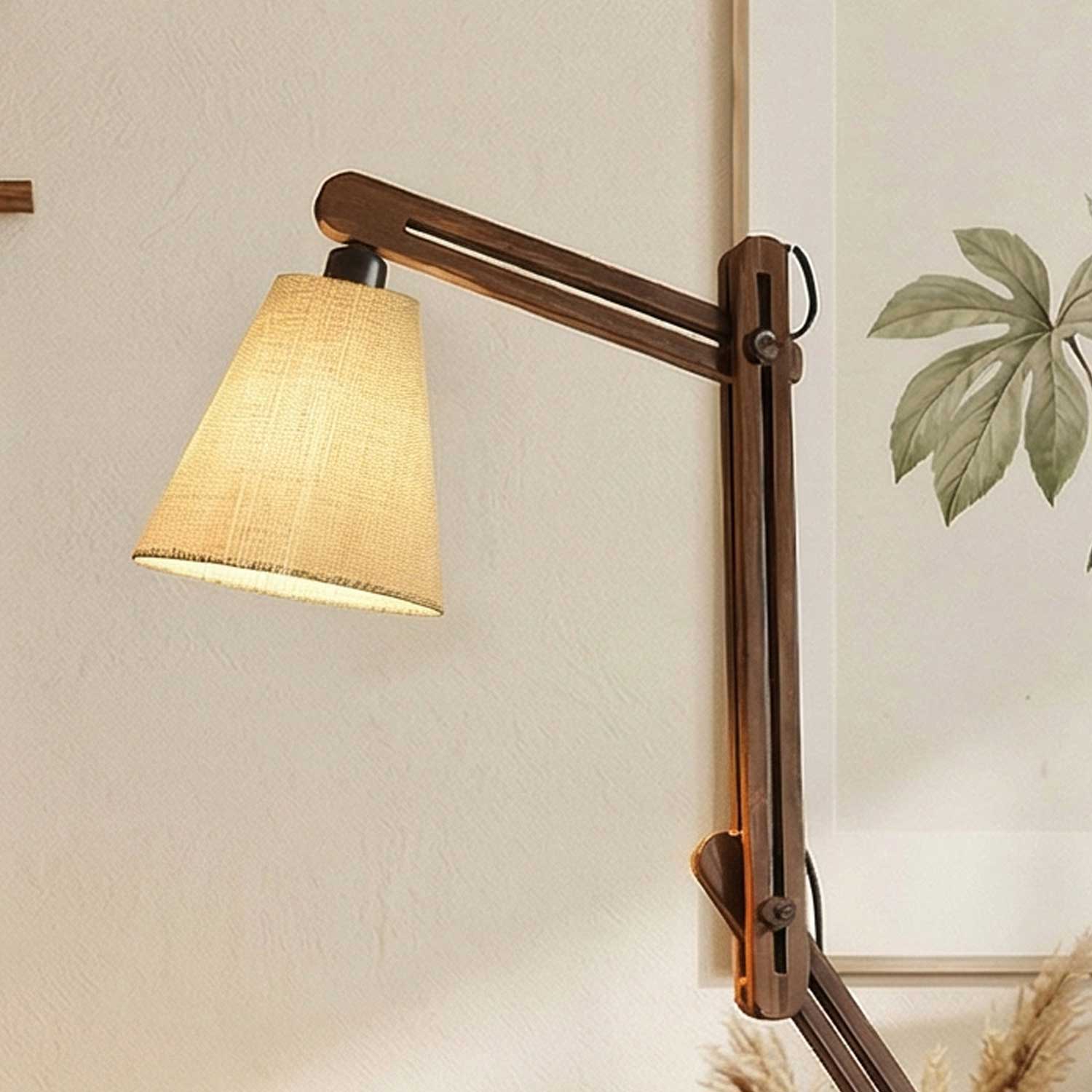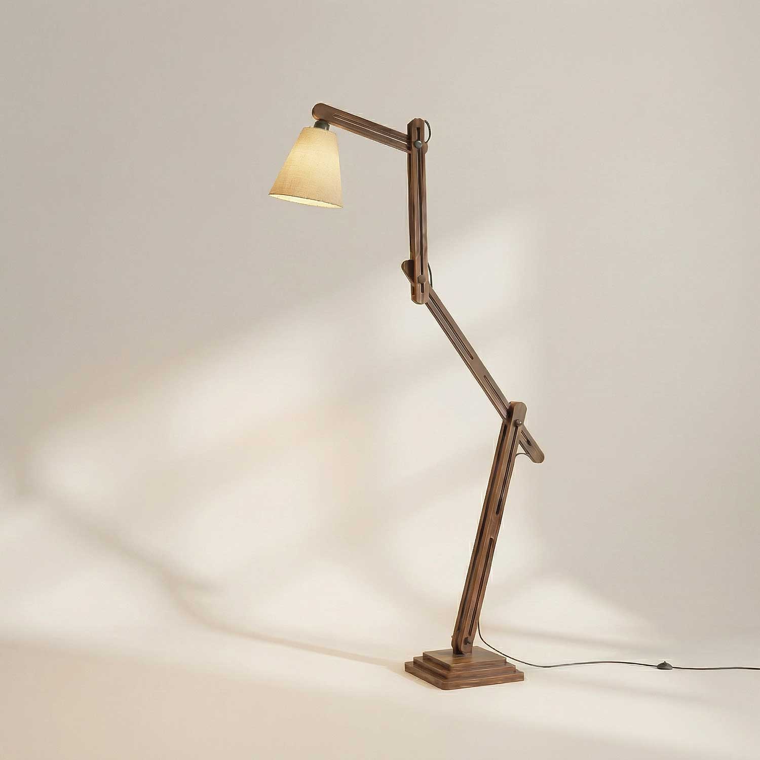 Hydra Wooden Floor Lamp with Brown Base and Jute Fabric Lampshade