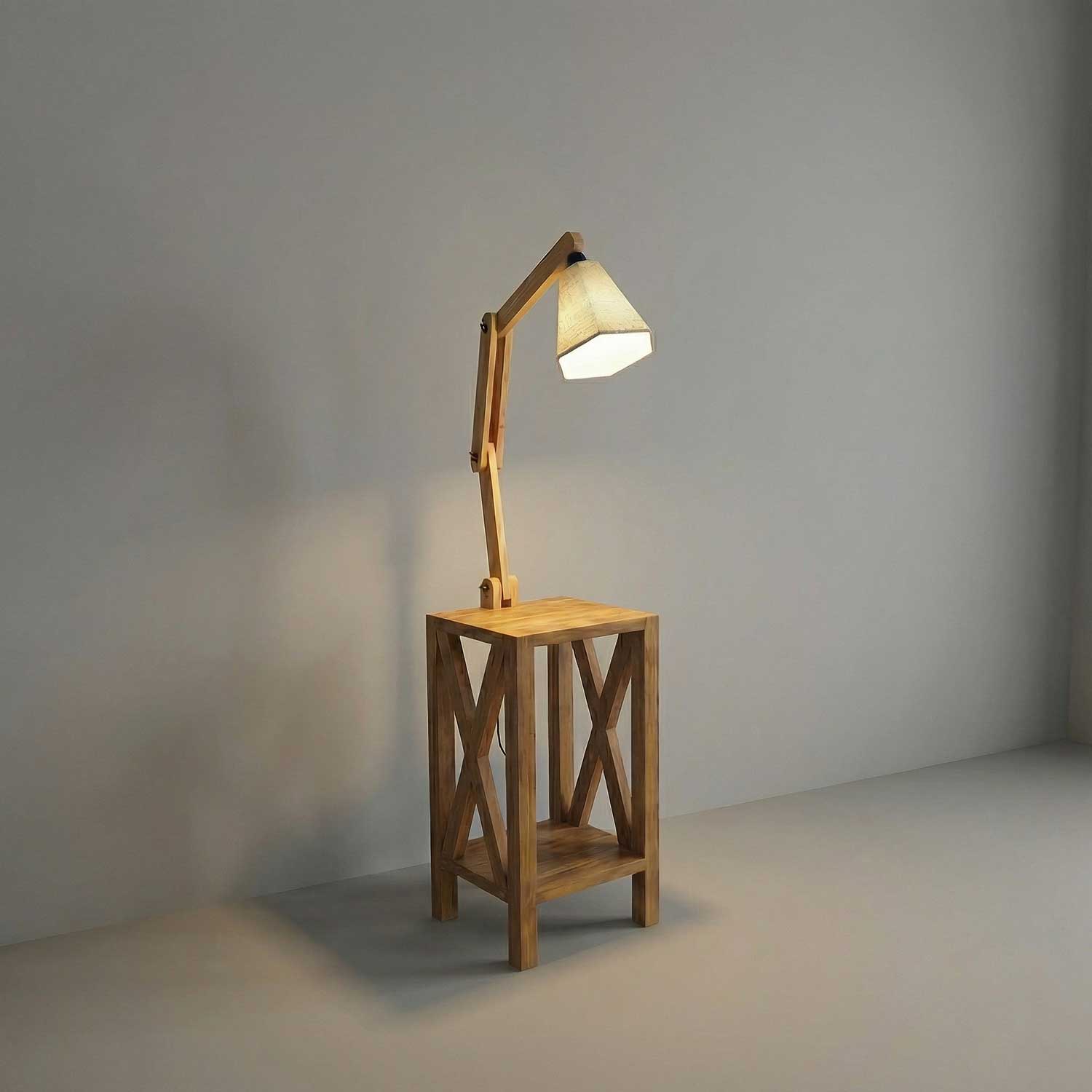 Maurice Wooden Floor Lamp with Brown Base and Jute Fabric Lampshade