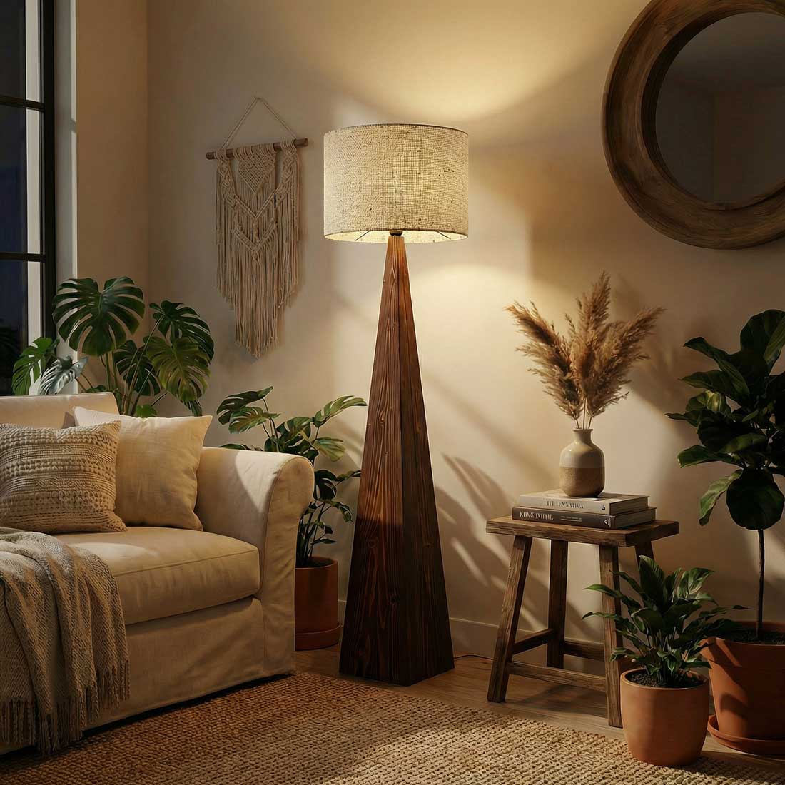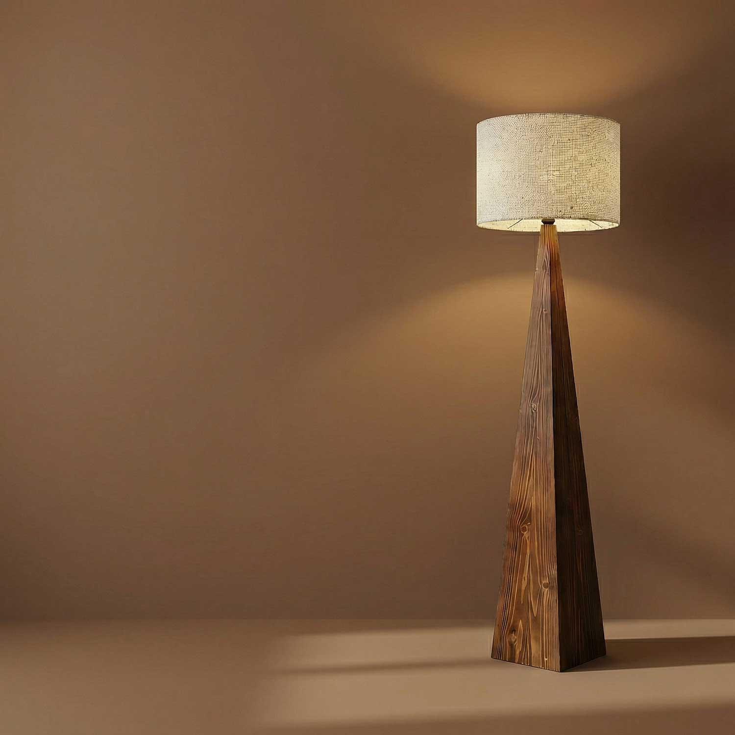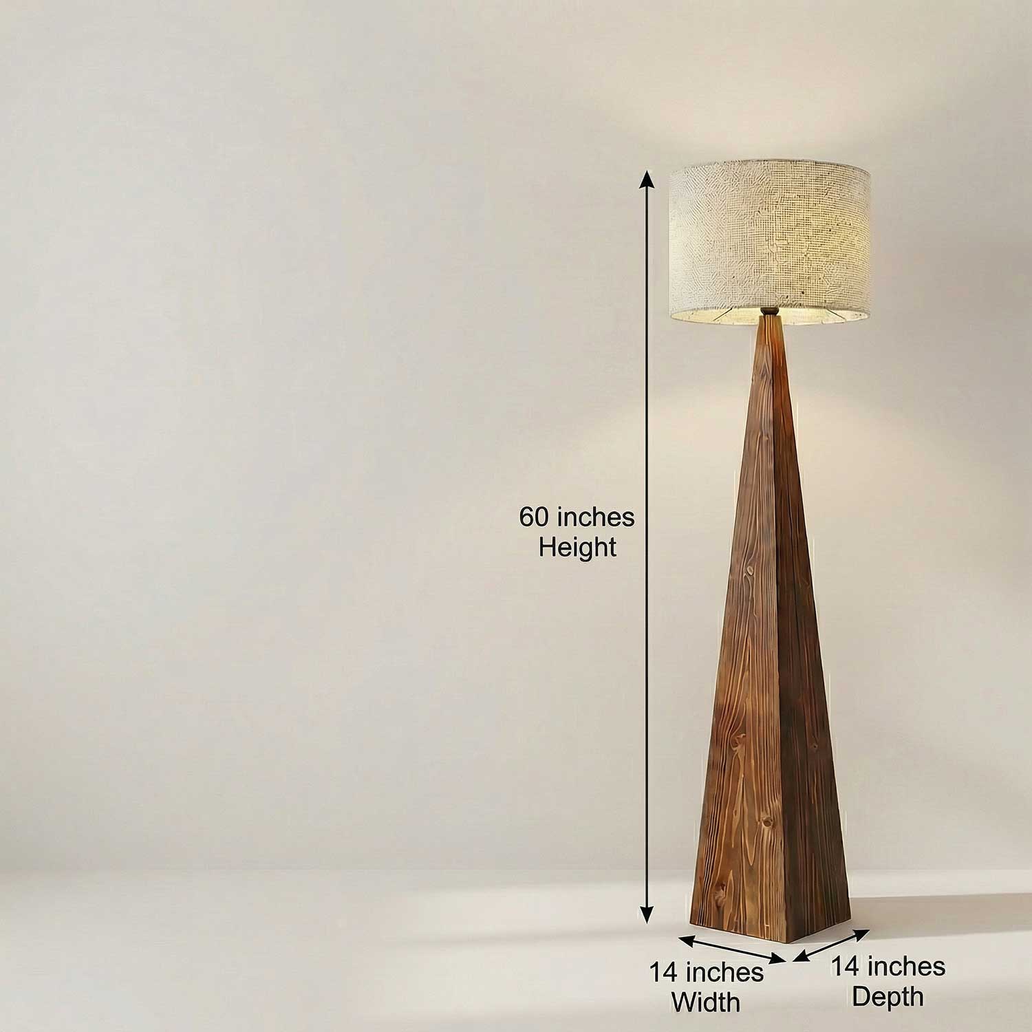 Monolith Wooden Floor Lamp with Brown Base and Jute Fabric Lampshade
