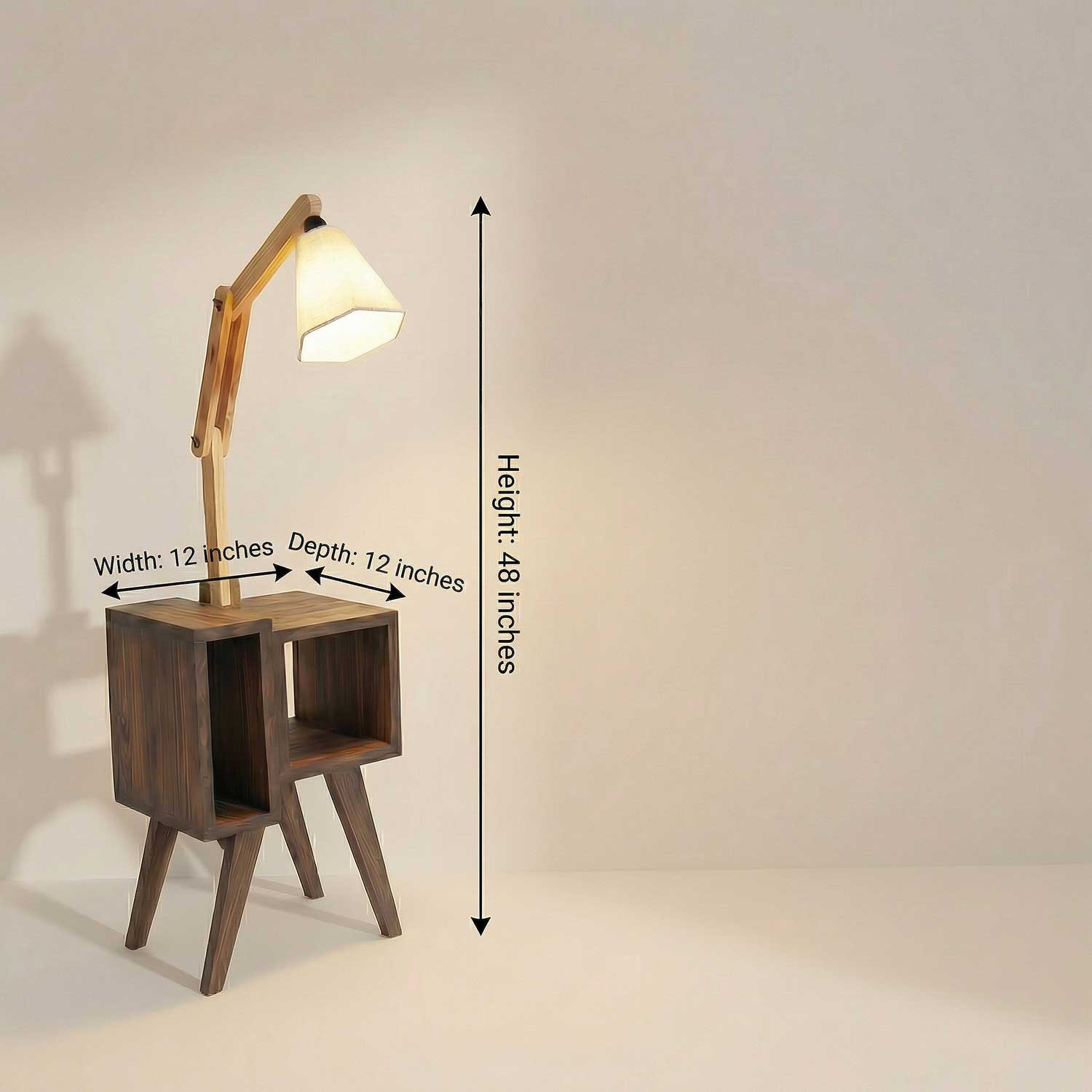 Noel Wooden Floor Lamp with Brown Base and Jute Fabric Lampshade