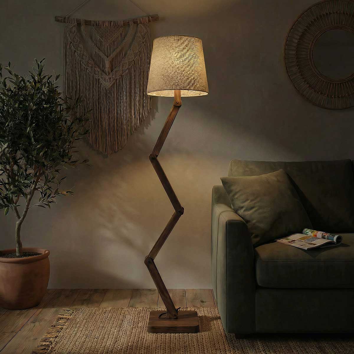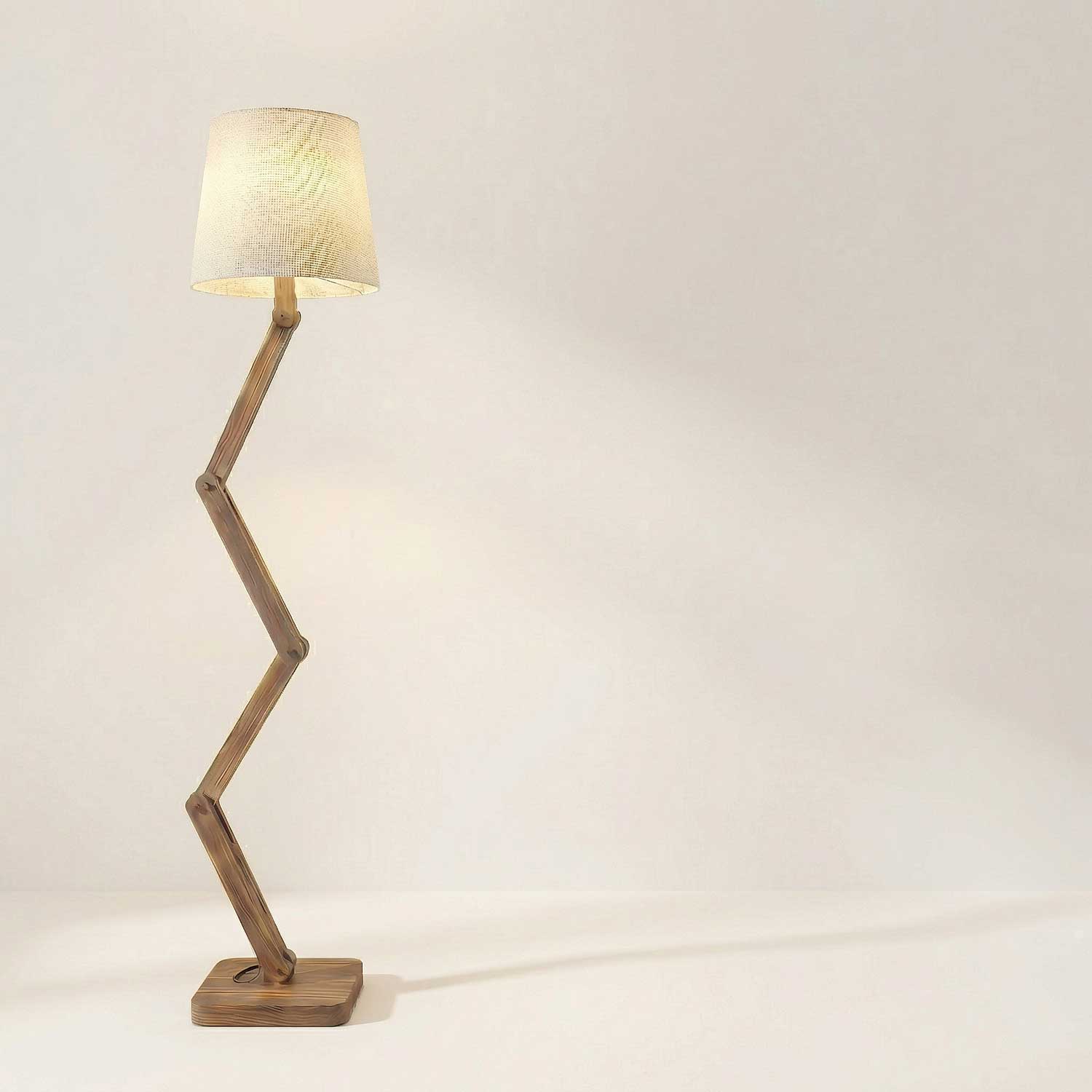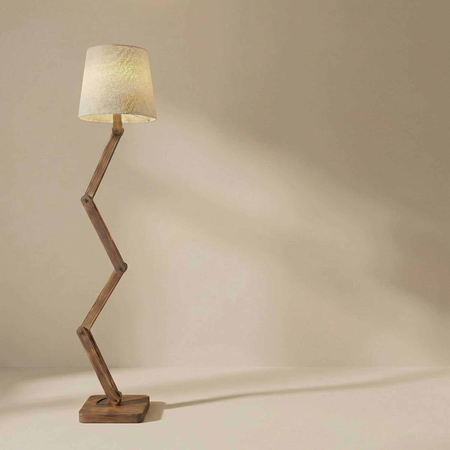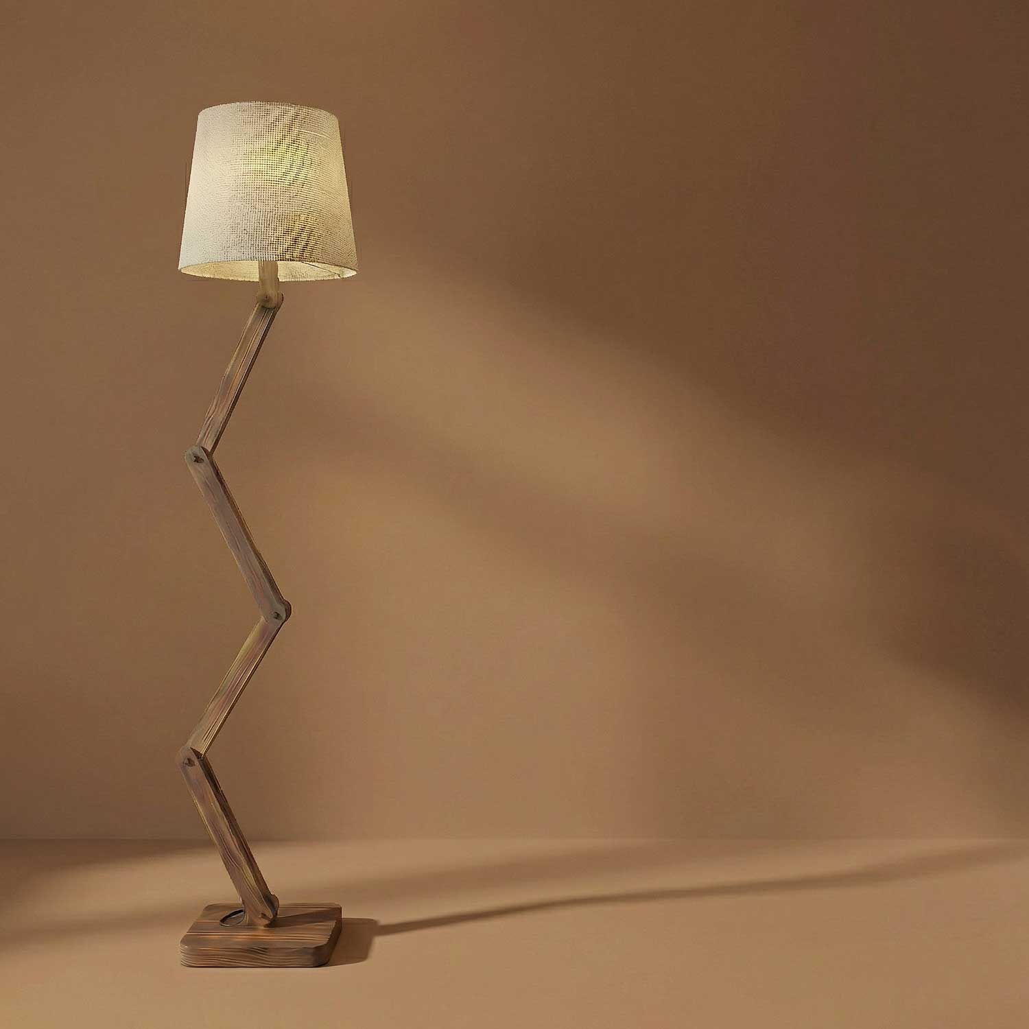Solid Wood Flex Beige Fabric Lampshade Floor Lamp With Brown Base