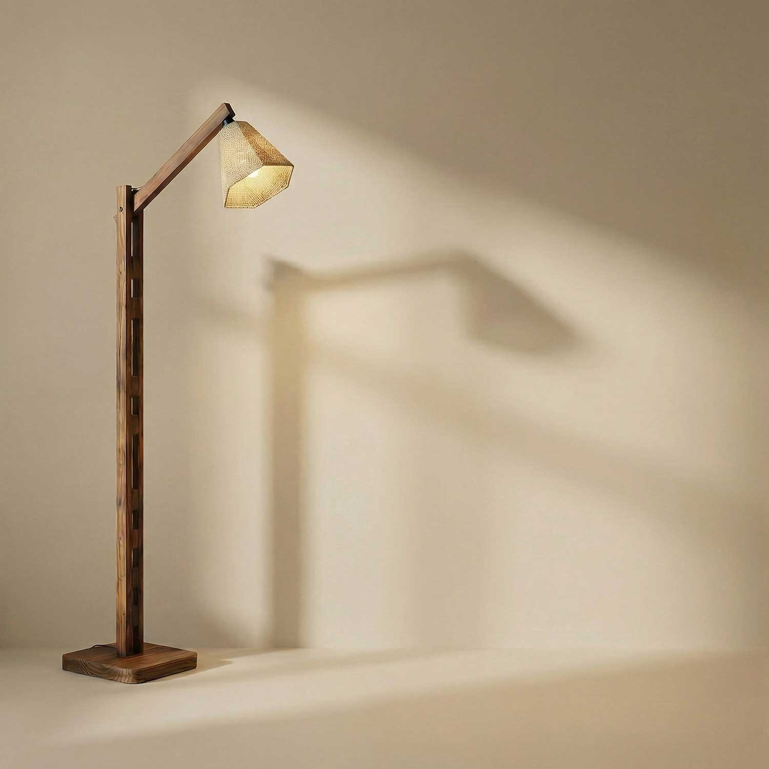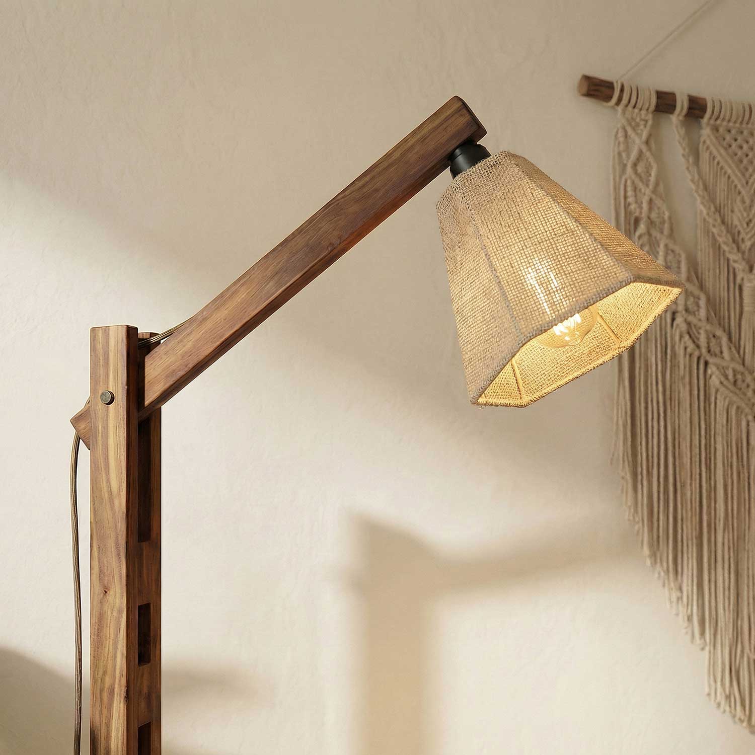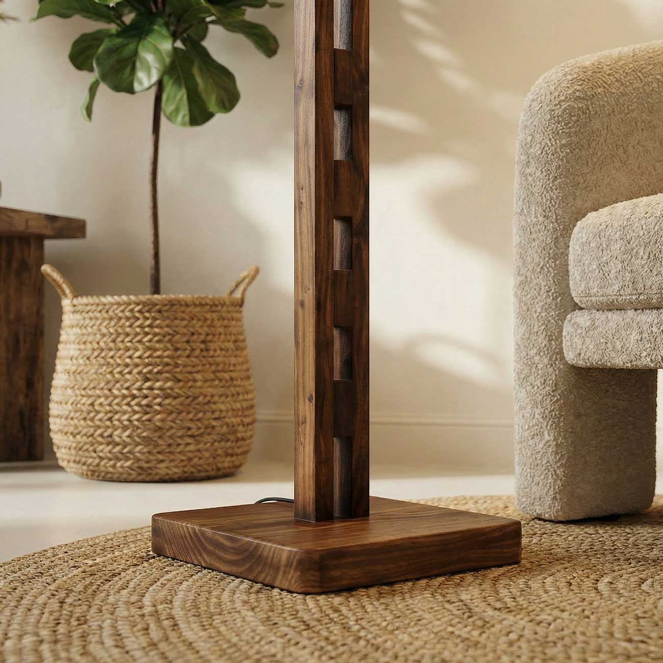 Solid Wood Hinge White Fabric Lampshade Floor Lamp With Brown Base
