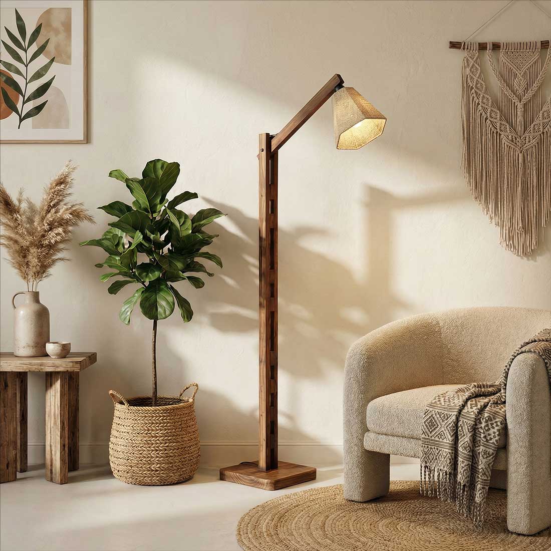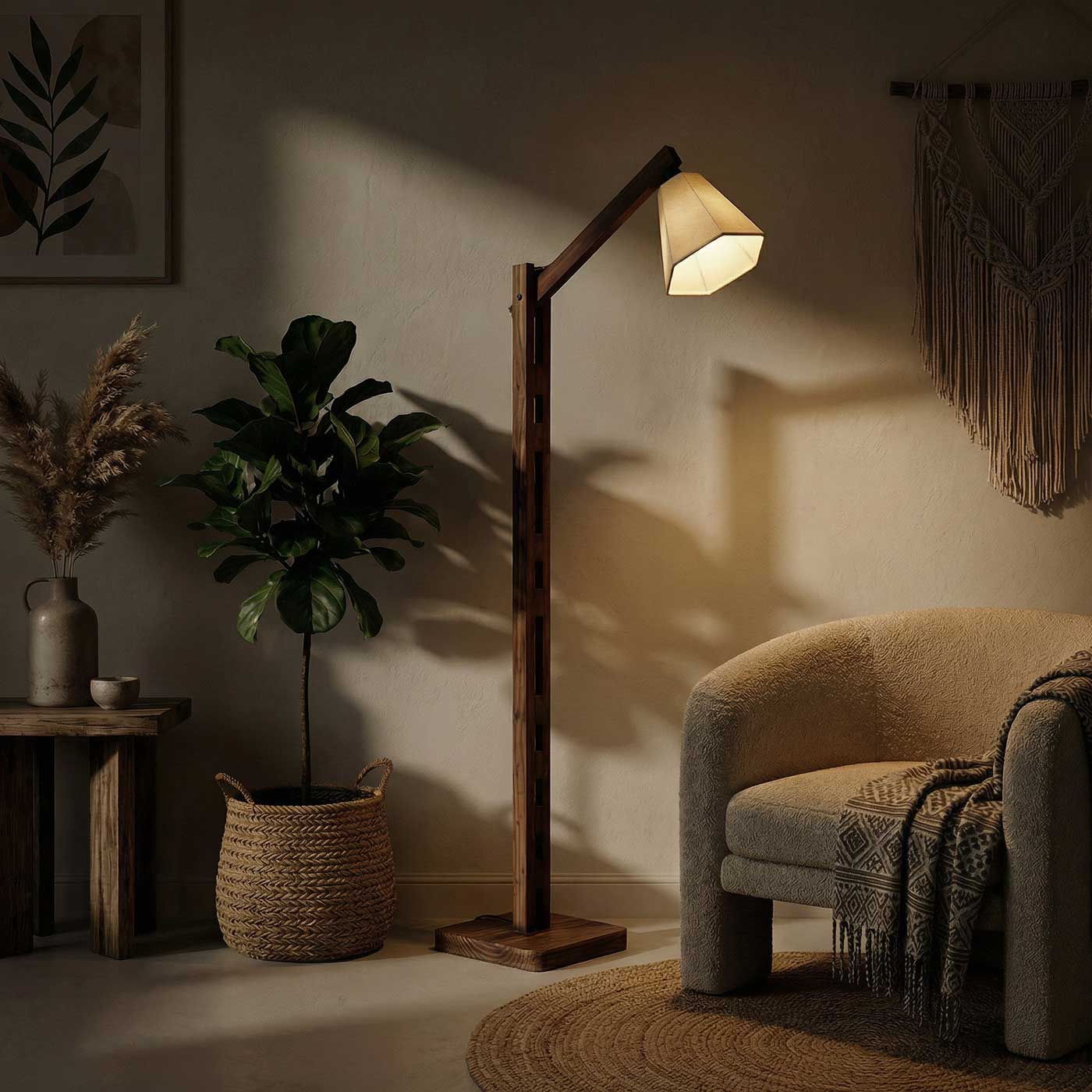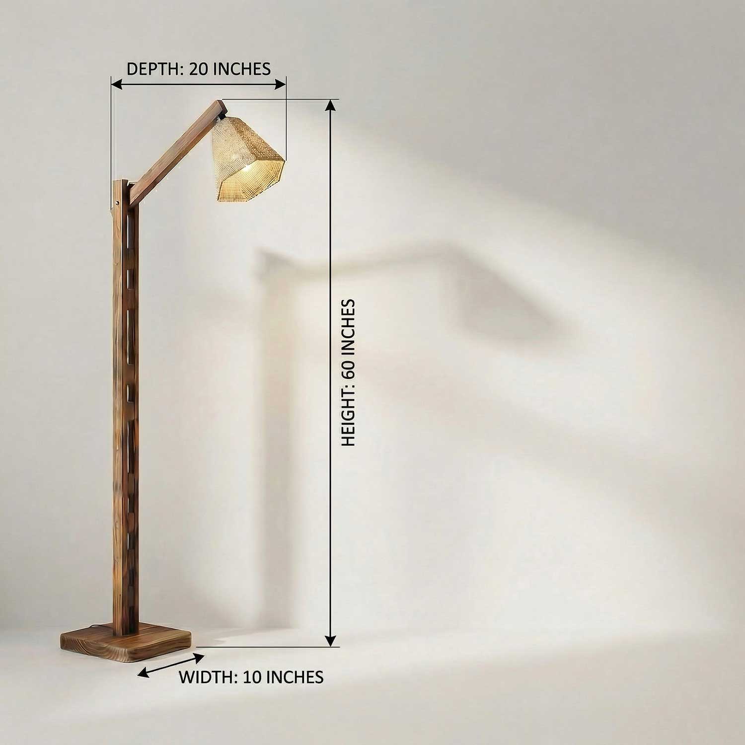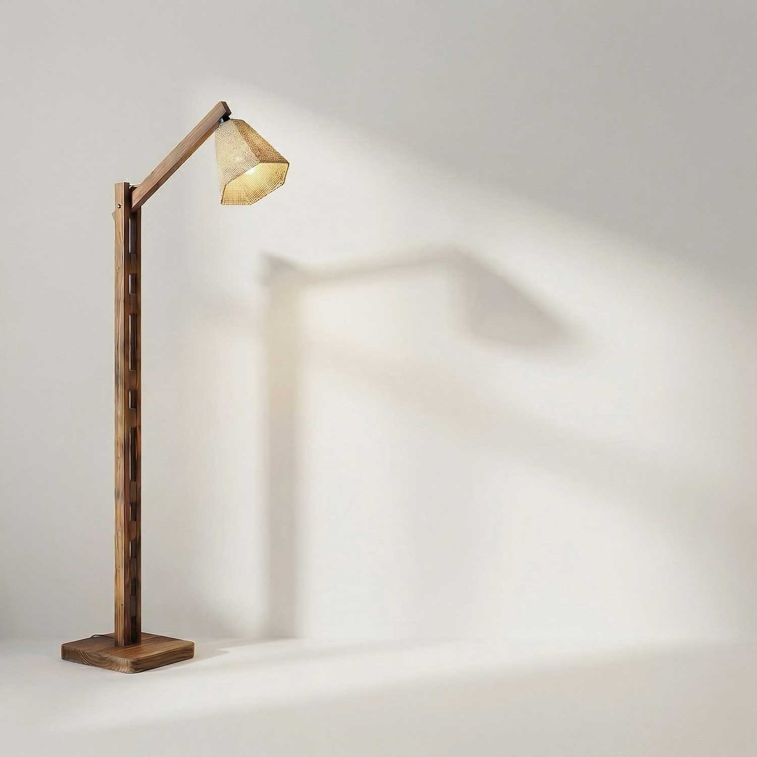 Solid Wood Hinge White Fabric Lampshade Floor Lamp With Brown Base
