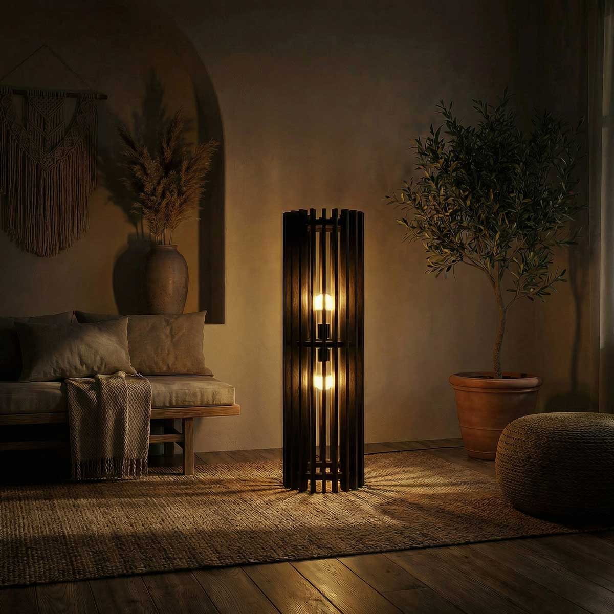 Solid Wood Ventus Duo Floor Lamp With Brown Base