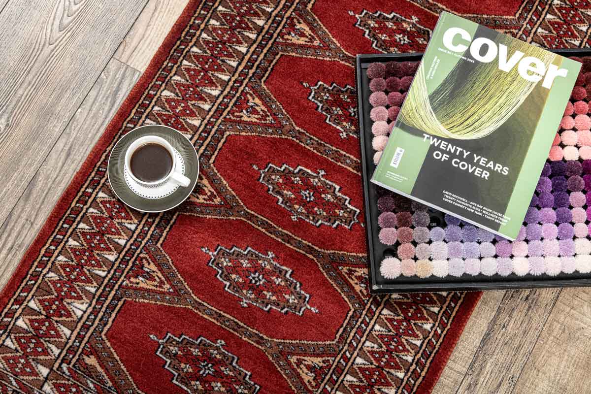 Each carpet is washed with the HERBAL-WASH. The finished carpet is removed from the loom and submerged in water for extensive washing by hand. Large wooden paddles known as ‘Pharwa’ are used to push the water through the pile to tighten the fibres and make the carpet colour fast.