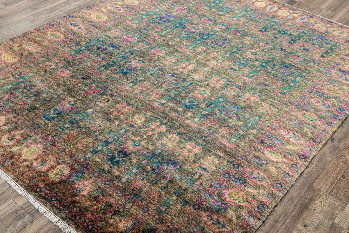 Twine Forest Green Gold 70% Wool & 30% Saree Silk Hand Knotted Carpet