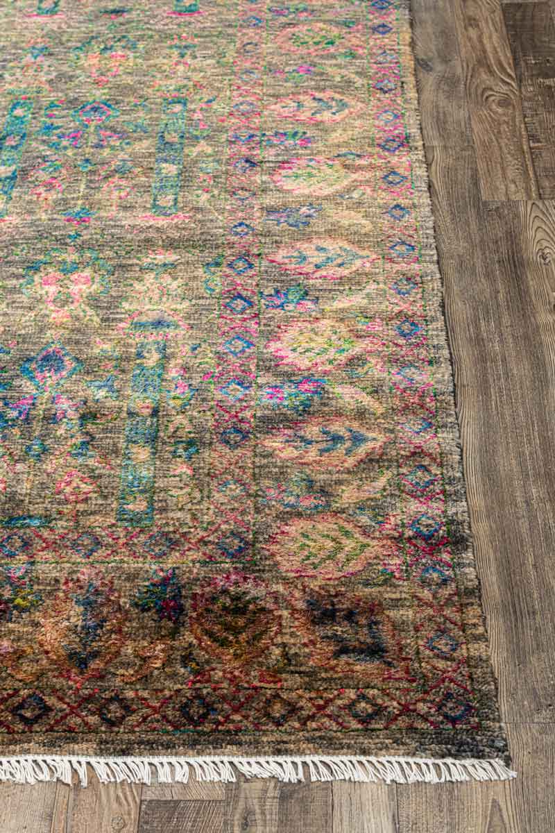Hand Tufted out of WOOL & BAMBOO SILK. The Surface is highlighted with multi-colored patterns made of Loops of naturally dyed WOOL & BAMBOO SILK that are hand tufted on it by using a manual tufting gun, The top of the rug is sheared to create an even pile which is then hand carved to accentuate elements of the design for a superior finish.