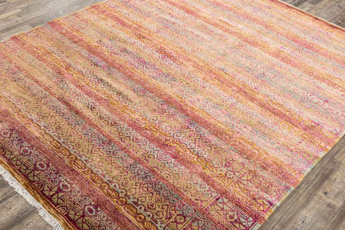 Twine Red Gold 70% Wool & 30% Saree Silk Hand Knotted Carpet