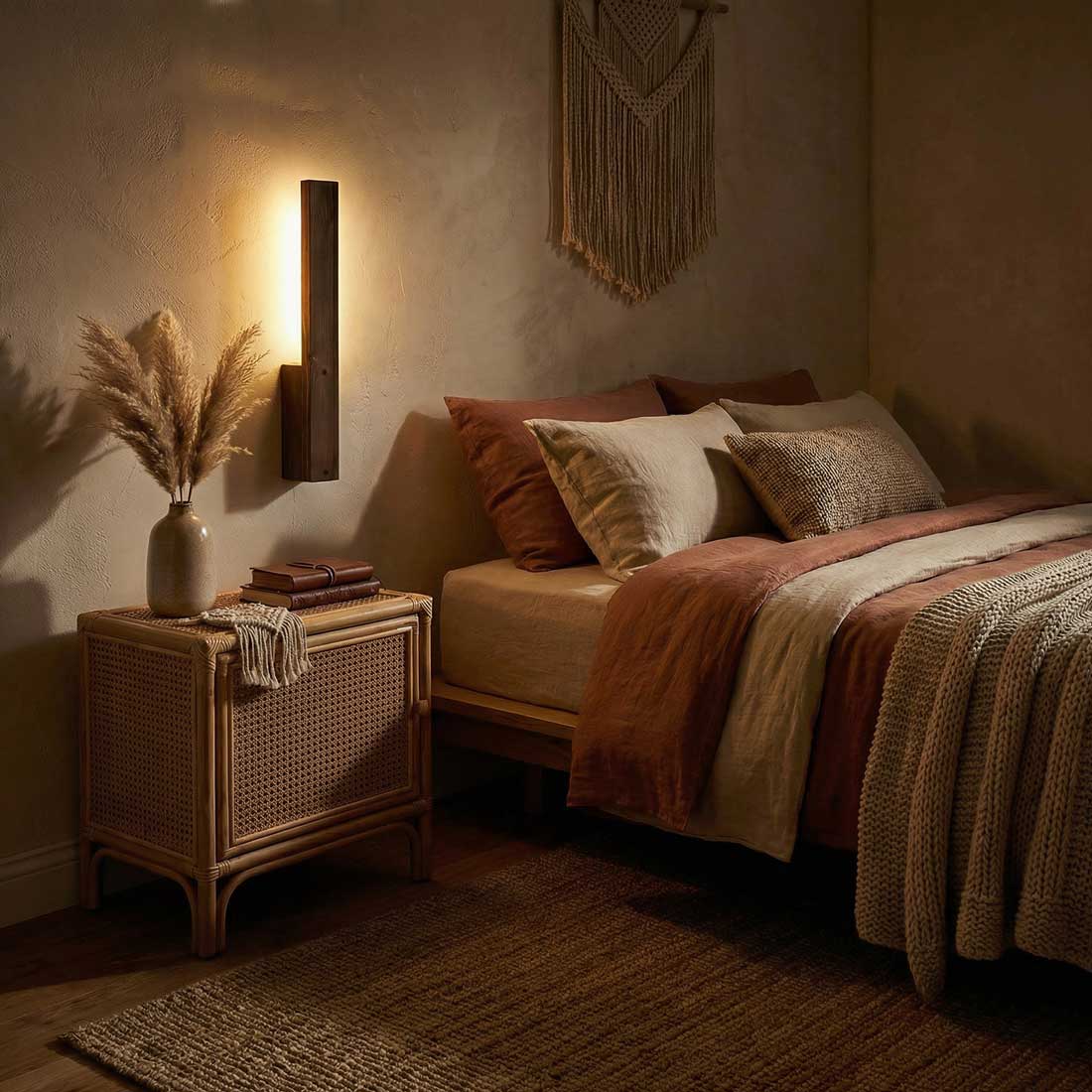 Slimline Brown Wooden LED Wall Light