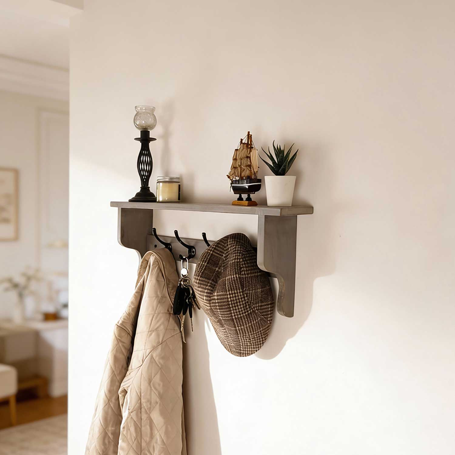 Brentwood Wooden Wall Shelf Organiser with Key Holders