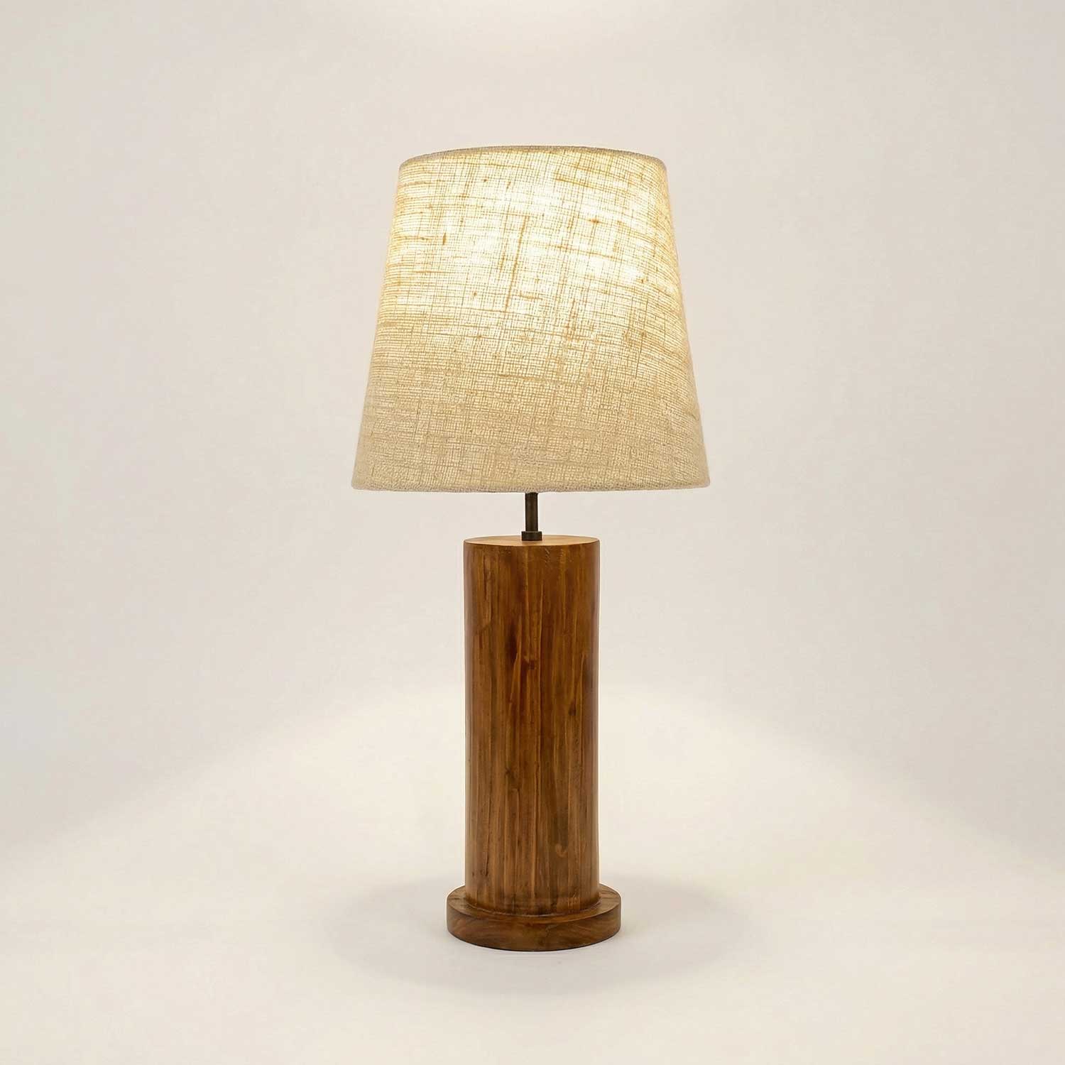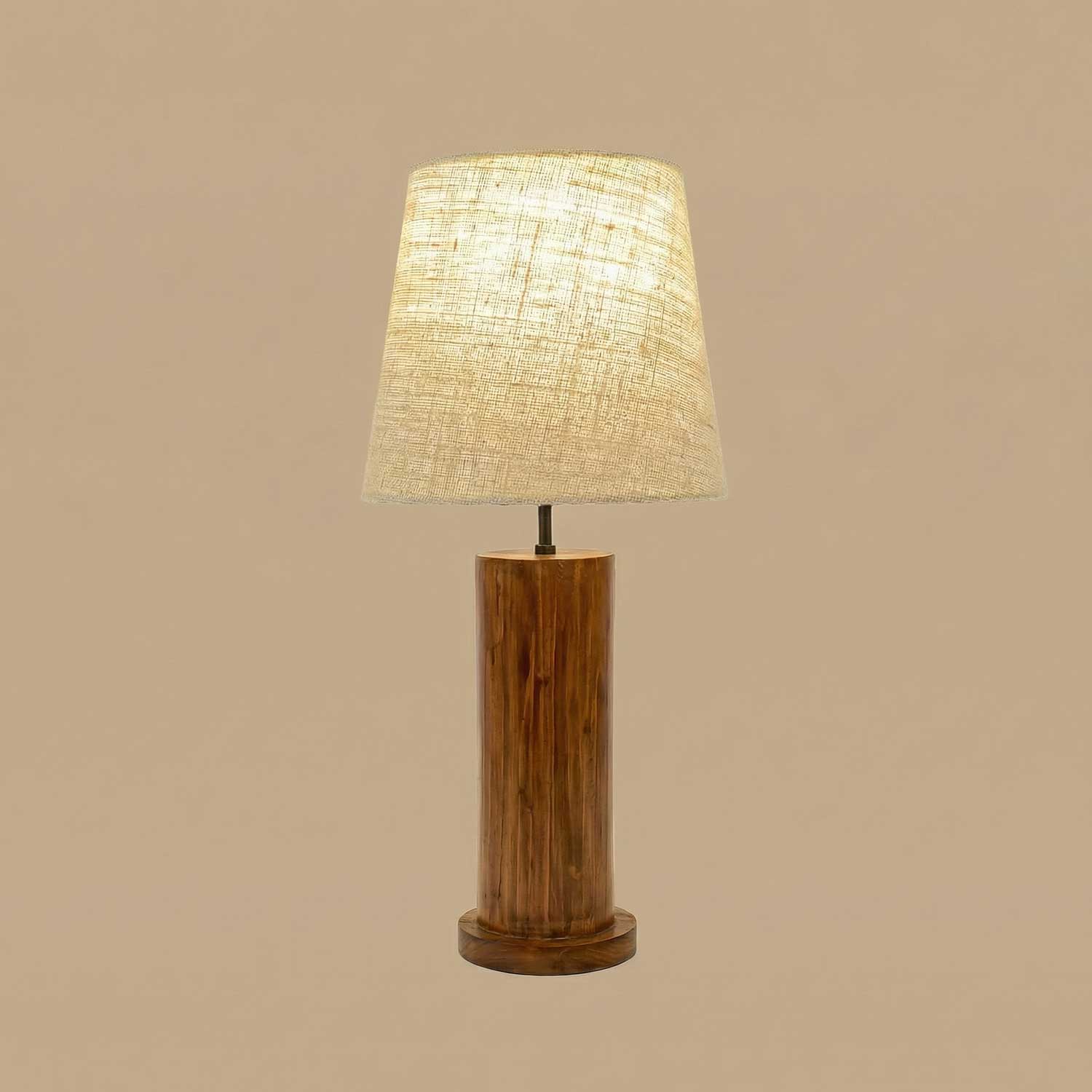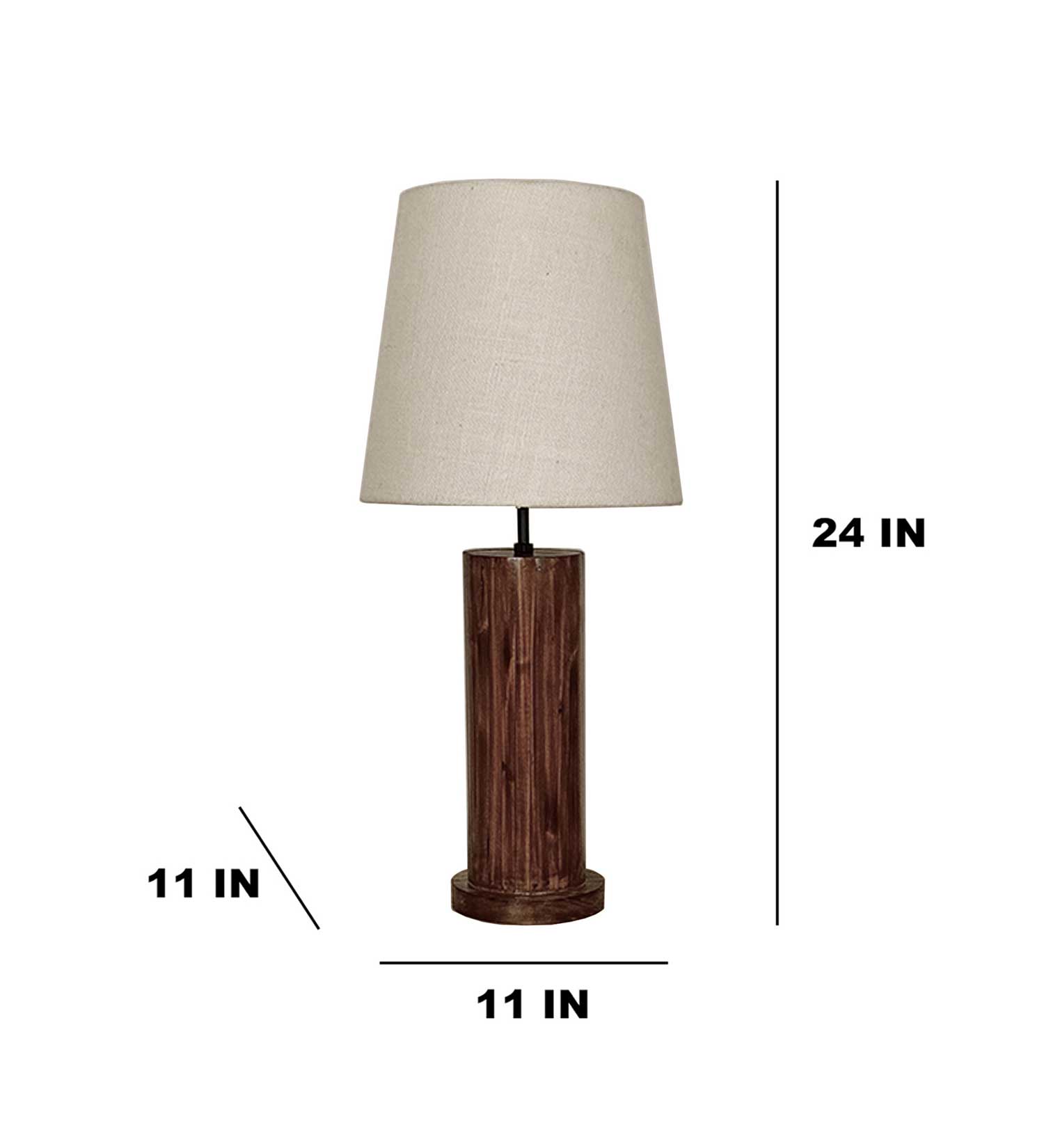 Solid Wood Cedar White Fabric Lampshade Table Lamp With Brown Base