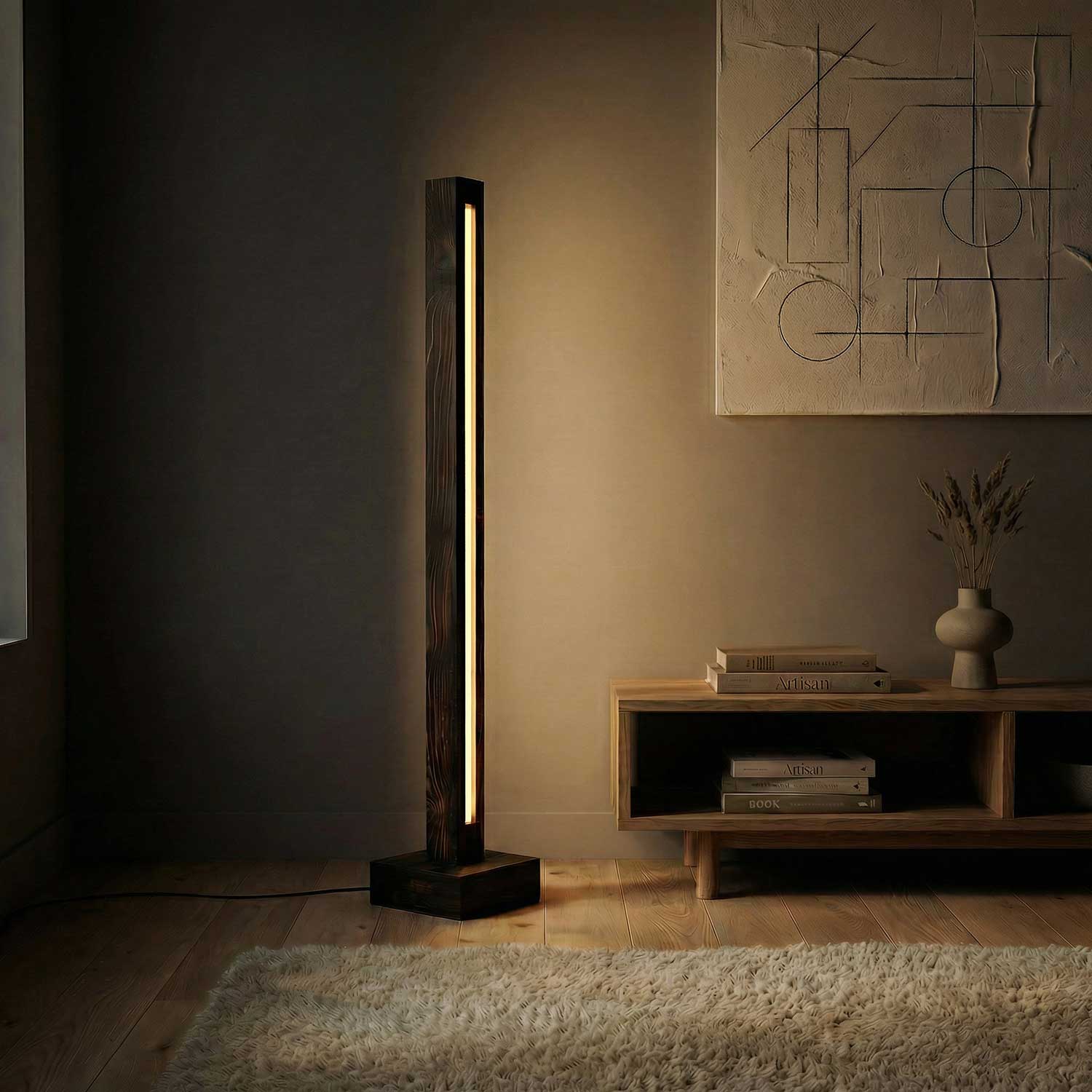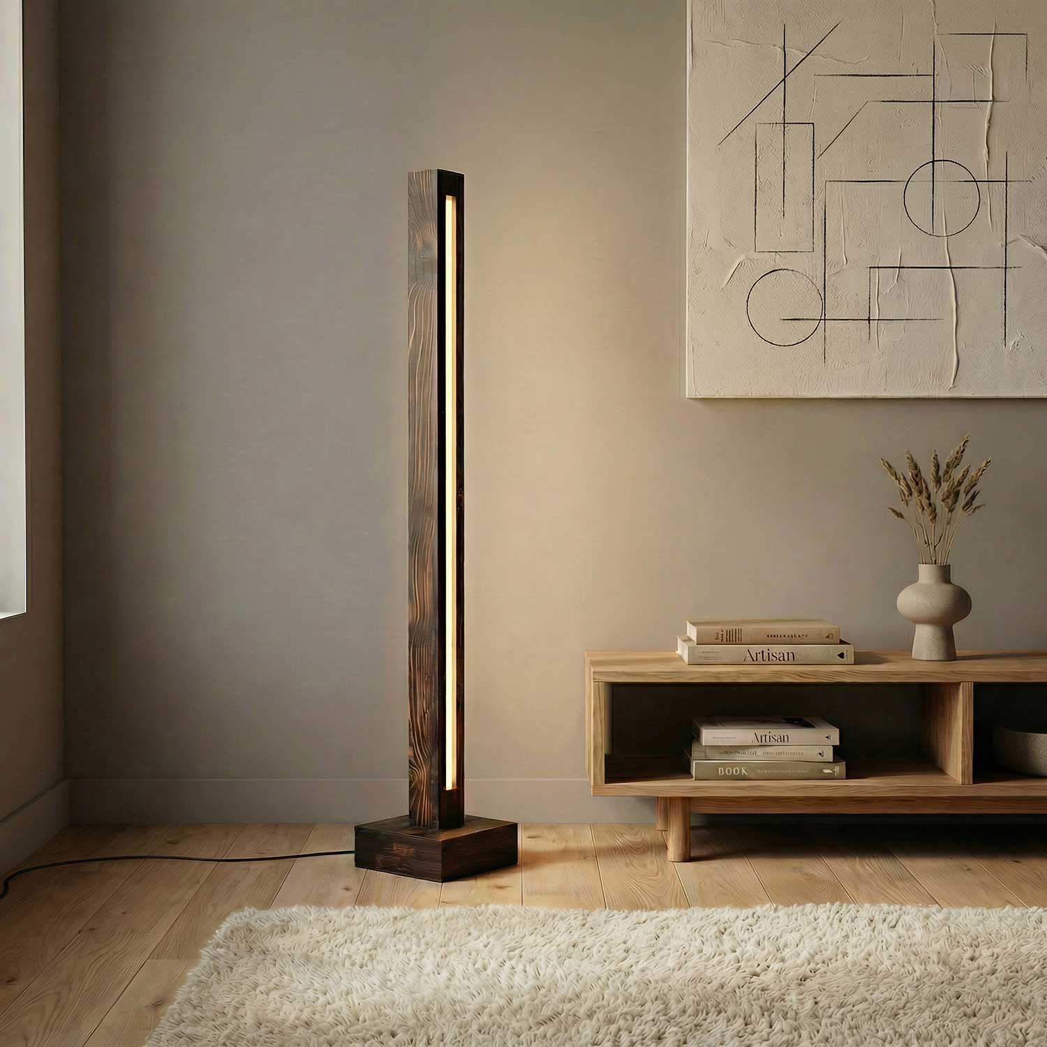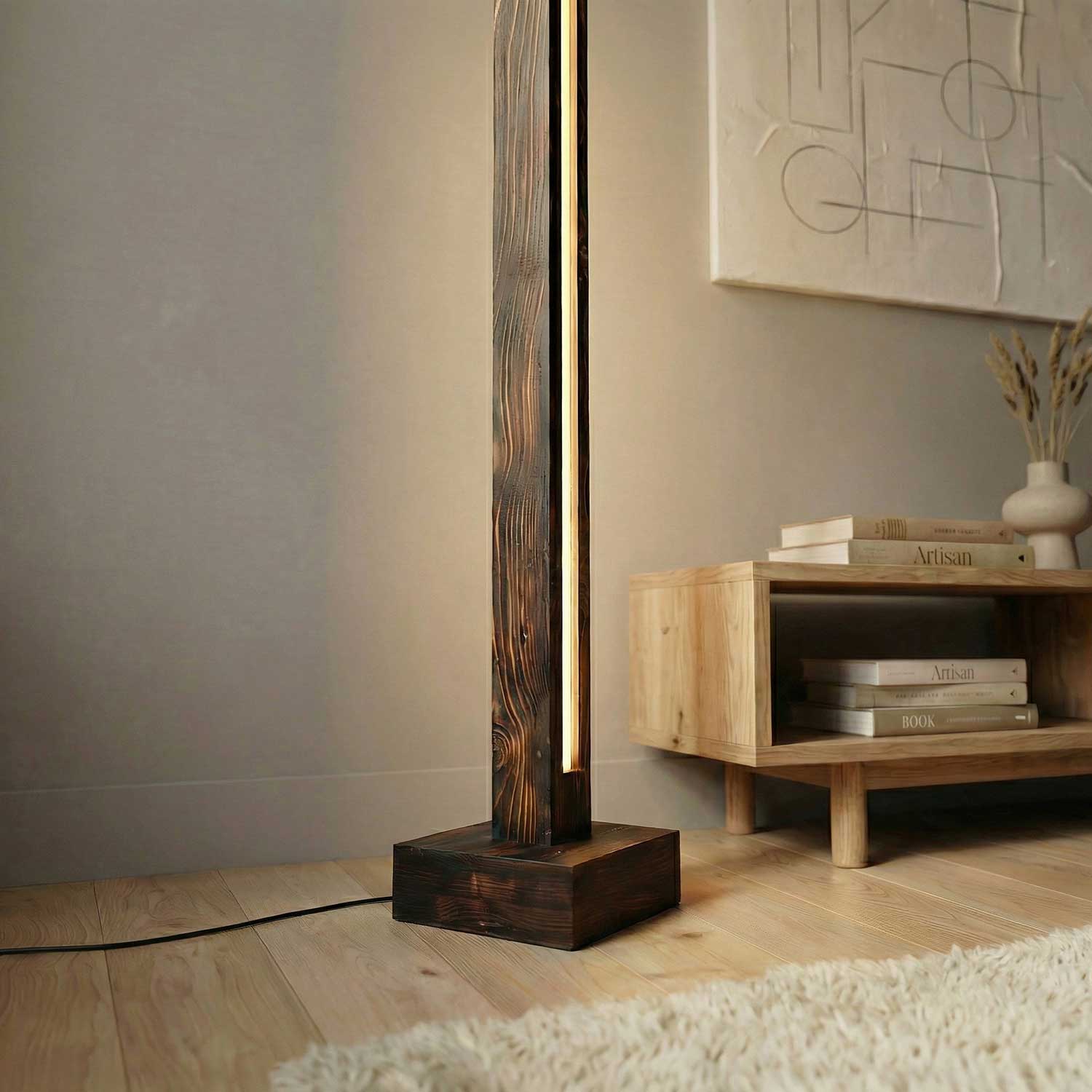 Solid Wood Excalibur LED Floor Lamp With Brown Base
